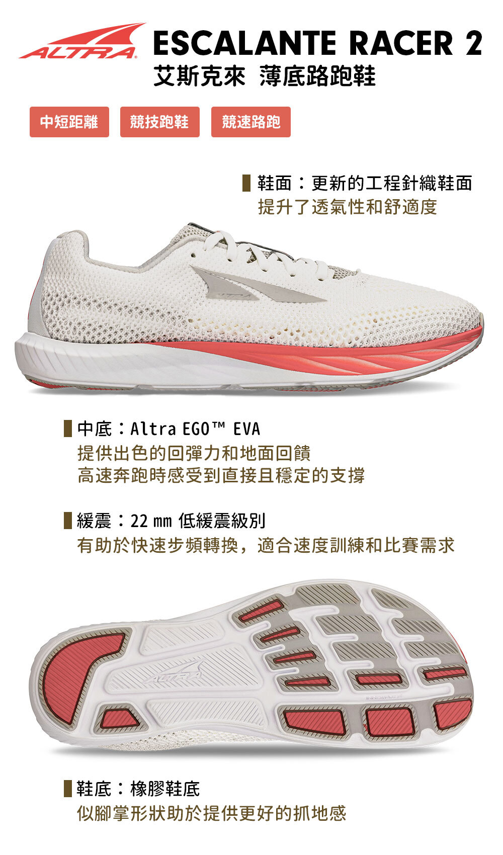 ALTRA ESCALANTE RACER 2 艾斯克來 薄底路跑鞋 女款 白紅