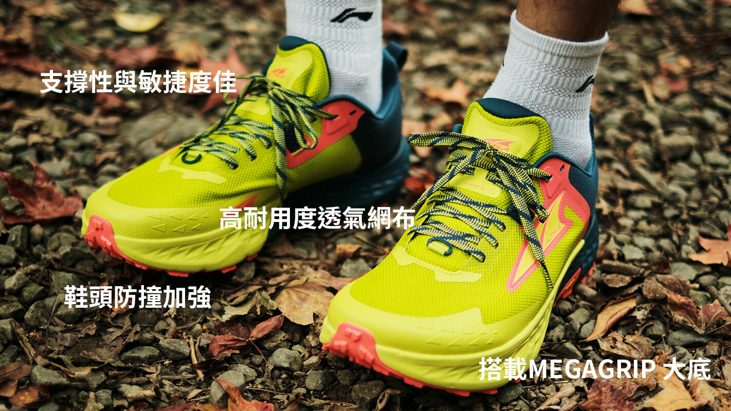 TIMP 系列迎來VIBRAM MEGAGRIP 大底,鞋體重量輕,包覆性高,適合中長程以上的越野競賽,平時訓練、登山健行也絕對沒問題,帶給你更敏捷、靈活的移動感受。