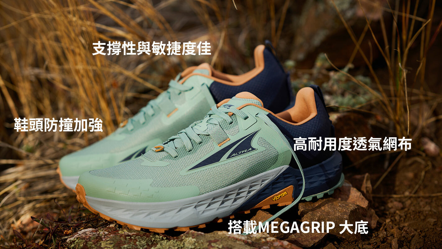 TIMP 系列迎來VIBRAM MEGAGRIP 大底,鞋體重量輕,包覆性高,適合中長程以上的越野競賽,平時訓練、登山健行也絕對沒問題,帶給你更敏捷、靈活的移動感受。