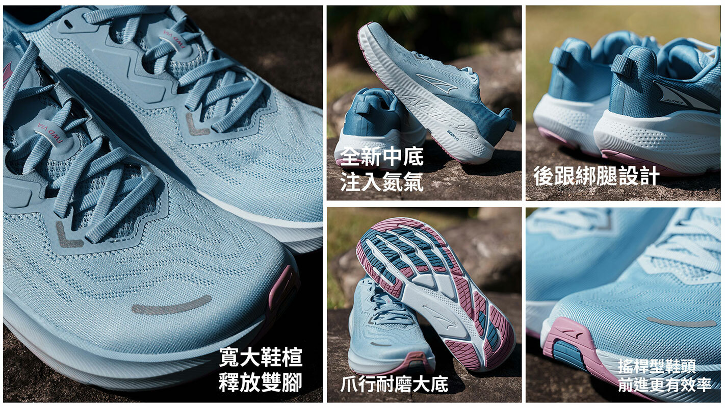 鞋面採用精密的網布材料,提供良好的透氣性,還有簡約俐落的外觀設計。搭配ALTRA 招牌的 FootShape® 自然鞋楦設計,讓腳趾有更寬敞的活動空間,中足也更舒適自然。