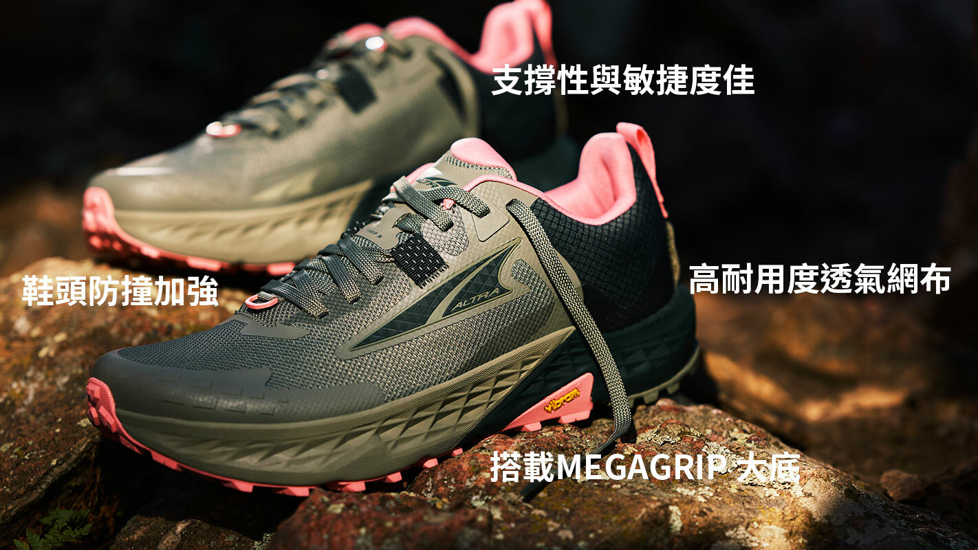 TIMP 系列迎來VIBRAM MEGAGRIP 大底,鞋體重量輕,包覆性高,適合中長程以上的越野競賽,平時訓練、登山健行也絕對沒問題,帶給你更敏捷、靈活的移動感受。
